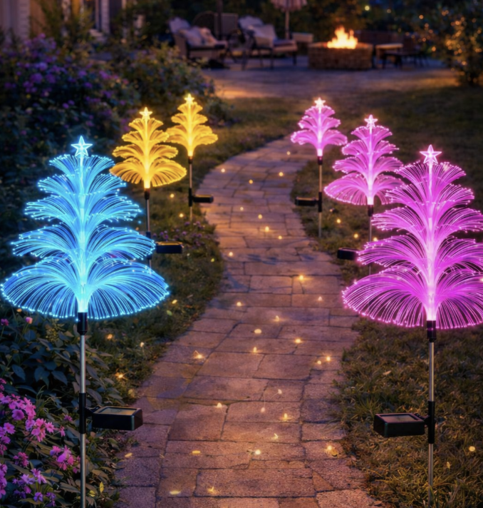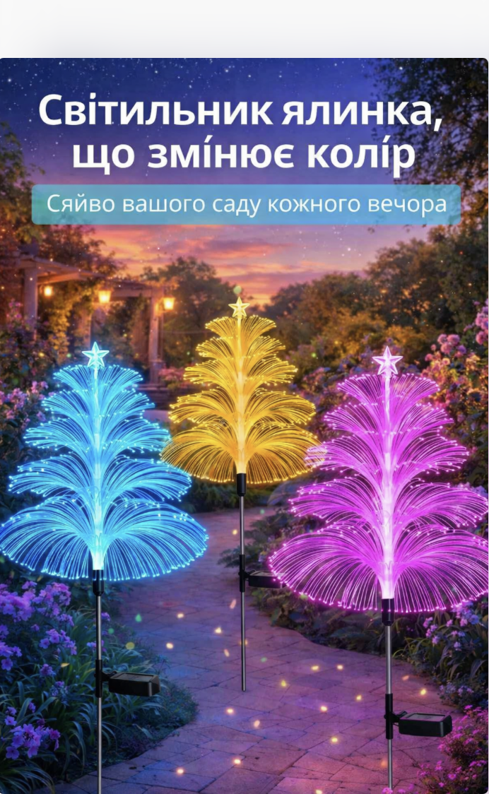 Купила кілька таких ялиночок для подвір’я — виглядають неймовірно! Навіть у дощ працюють без проблем.